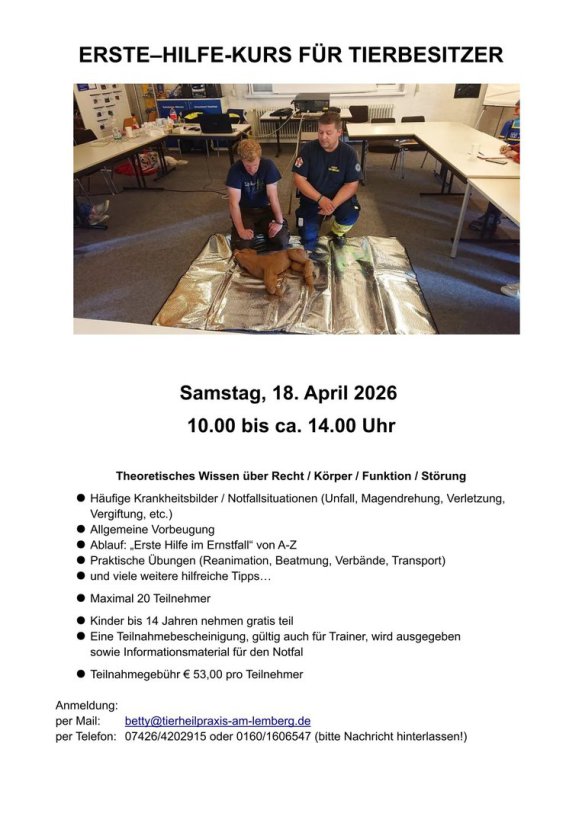 ERSTER HILFEKURS FÜR TIERBESITZER